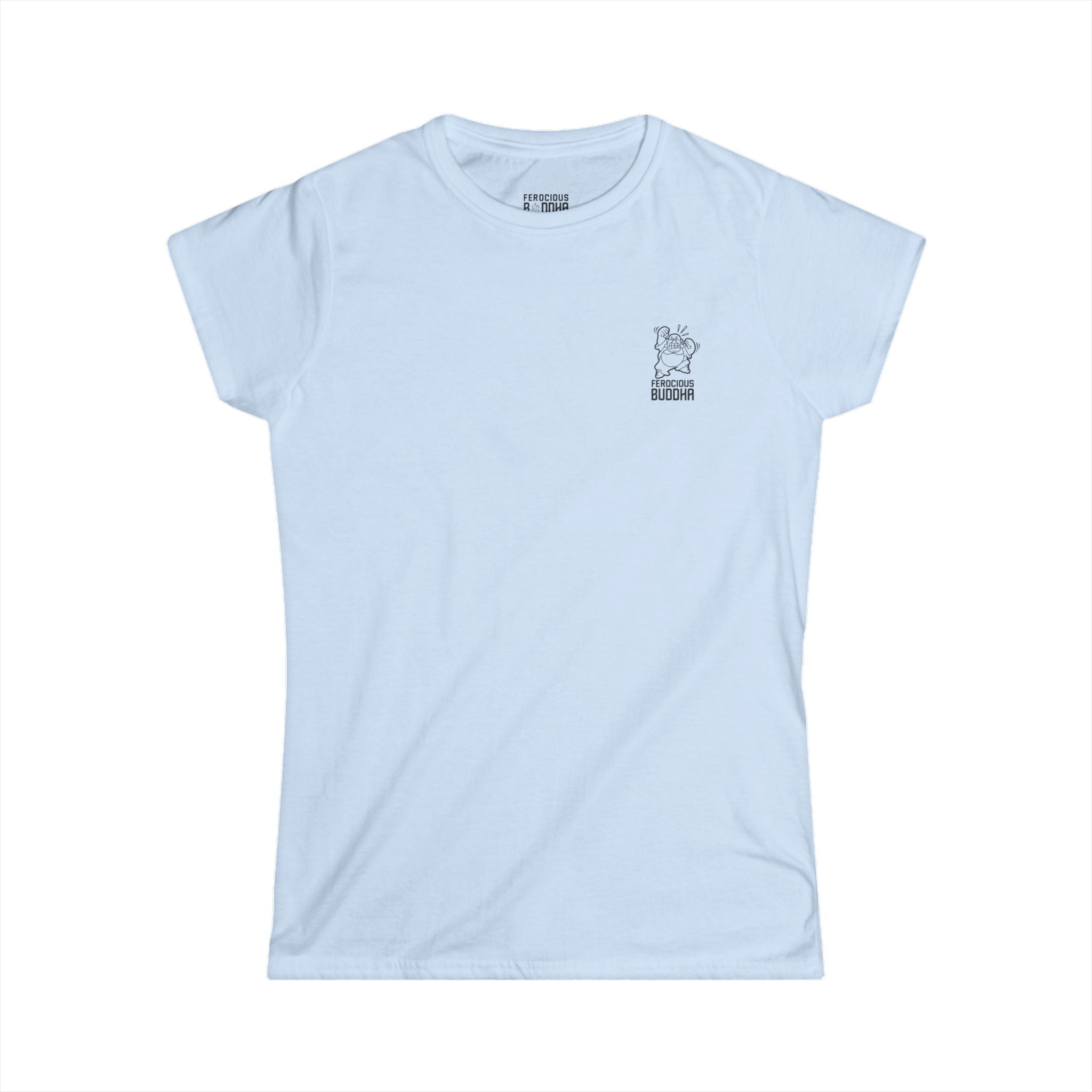 The woman's softstyle tee is a more feminine take on the classic tee. The sleeves are shortened to reveal some shoulder. The fabric is 100% ringspun cotton for all solid colors. The shoulders are taped with twill to prolong durability. The collar seam is reinforced with ribbed knitting.